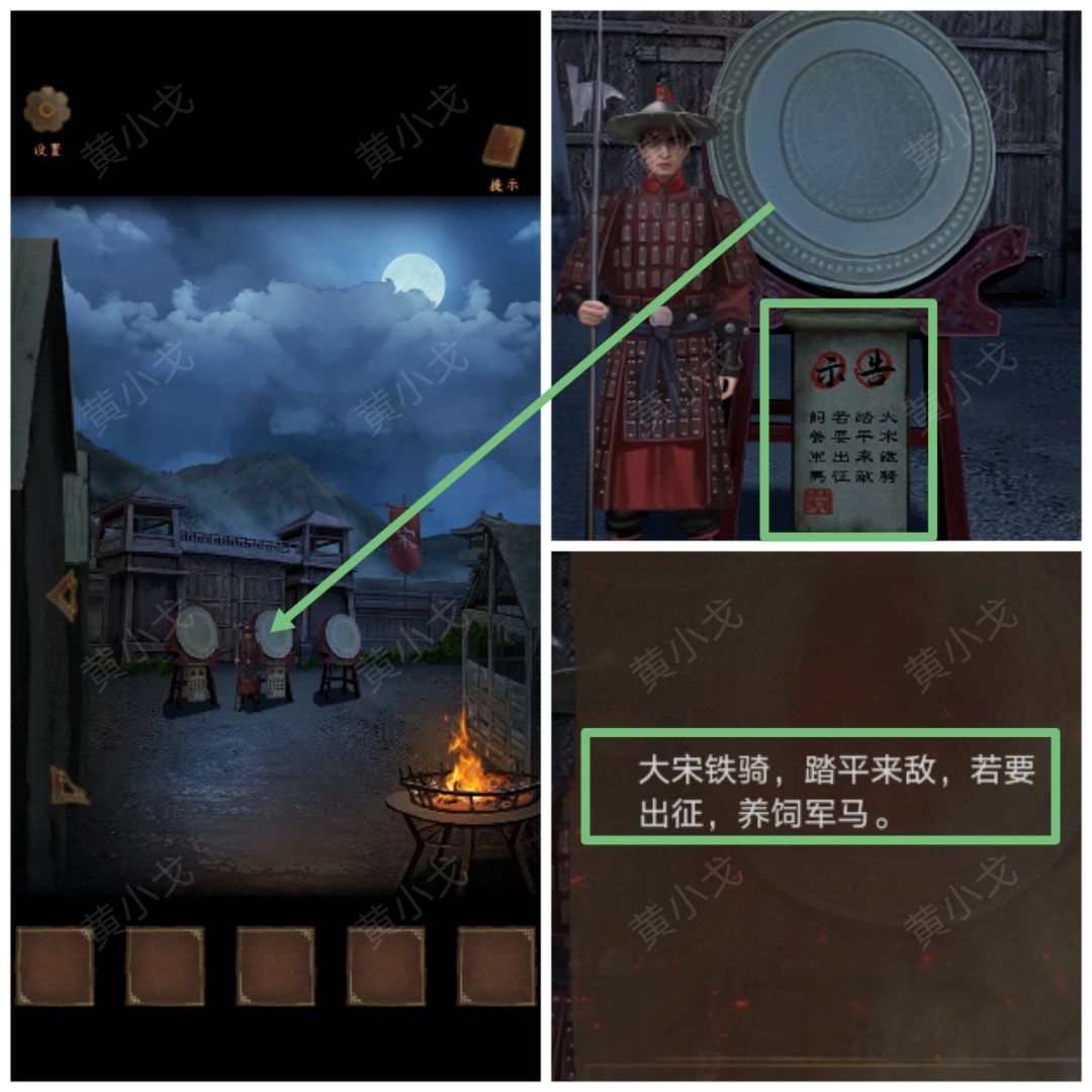 1.(营帐外)点击第一面鼓,查看告示,获得线索(首备兵甲)