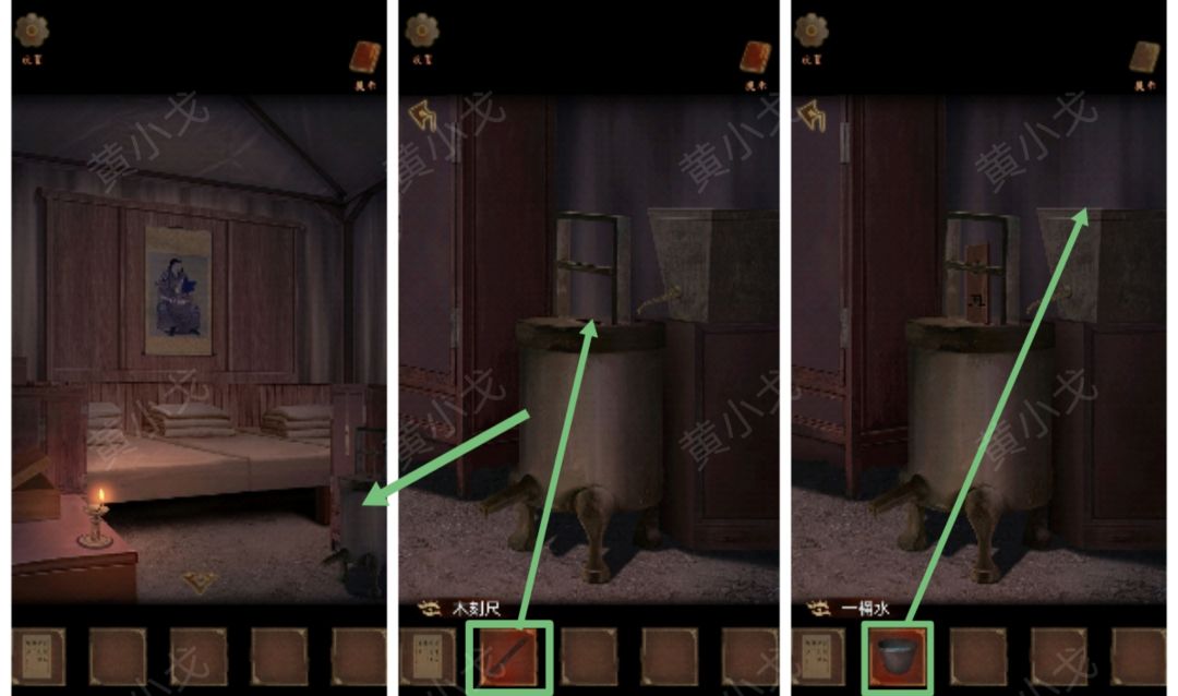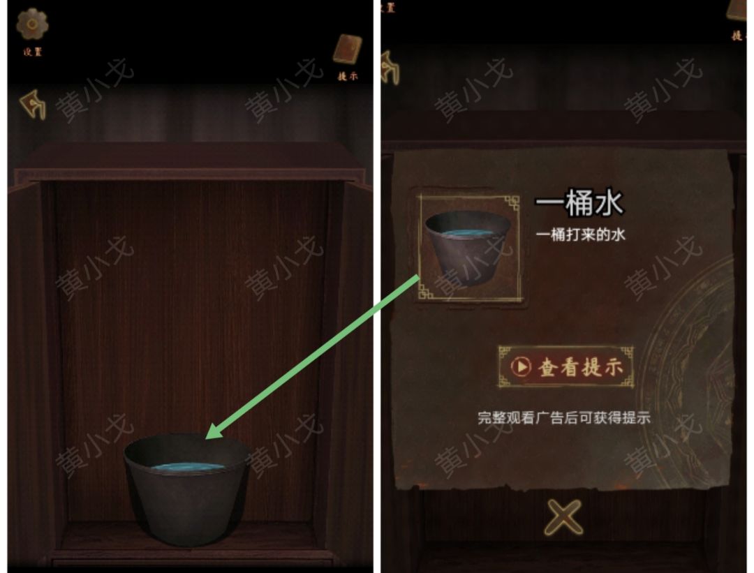 16.点击铜漏,放入【木刻尺】,倒入【一桶水】