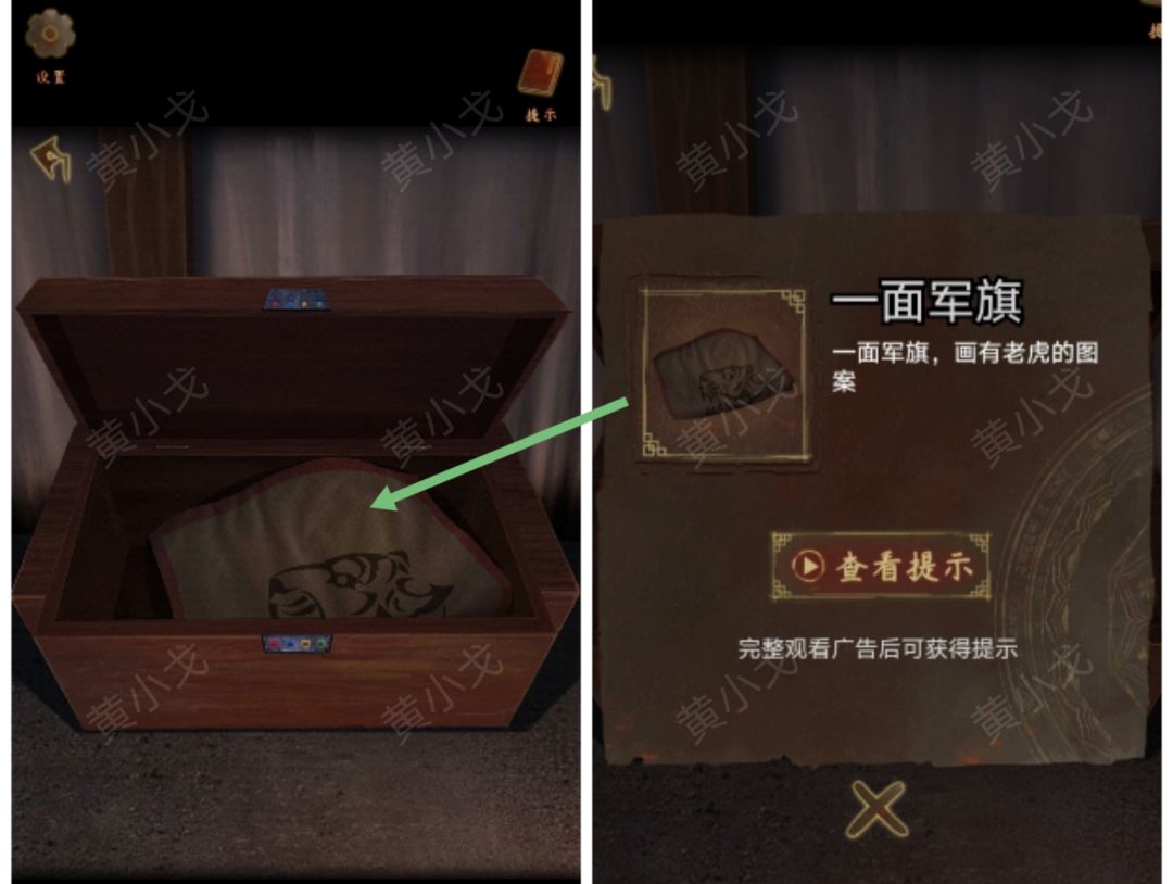 11.点击盒子,根据上面的图形,结合【巡夜告示】上的线索,输入密码:贰伍肆壹