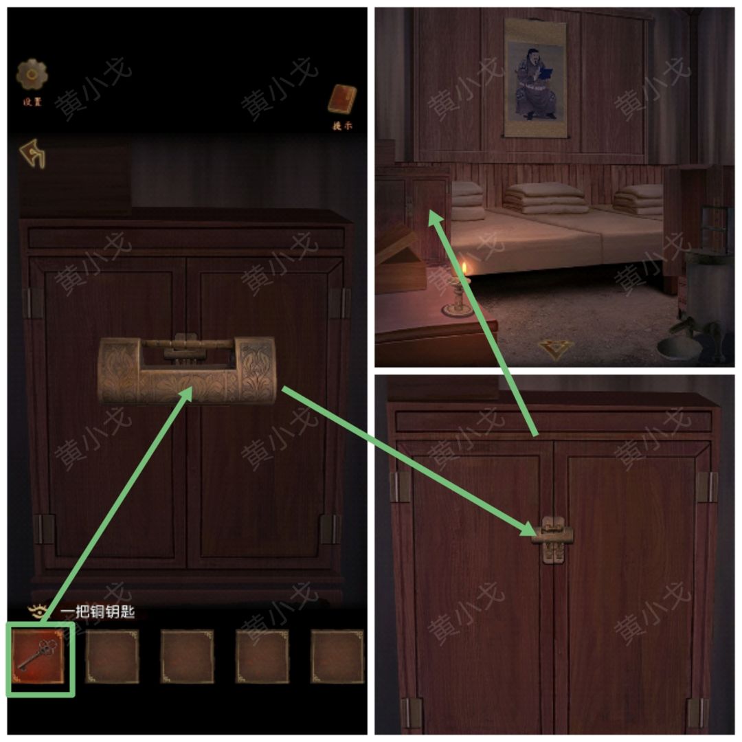 18.点击左边柜子上的锁,使用【一把铜钥匙】