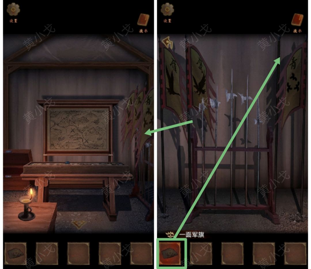9.(就寝营帐)点击桌子,获得【火折子】,用【火折子】点燃油灯