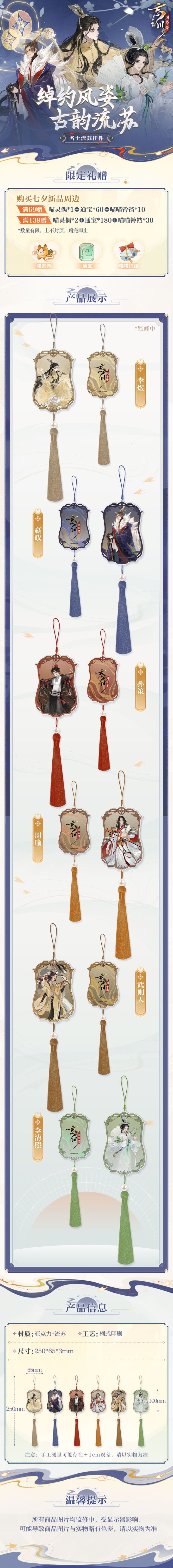 ②名士流苏挂件:嬴政、李清照、武则天等六位名士邀您共赏忘川美景,飘逸流苏常伴大人身旁;