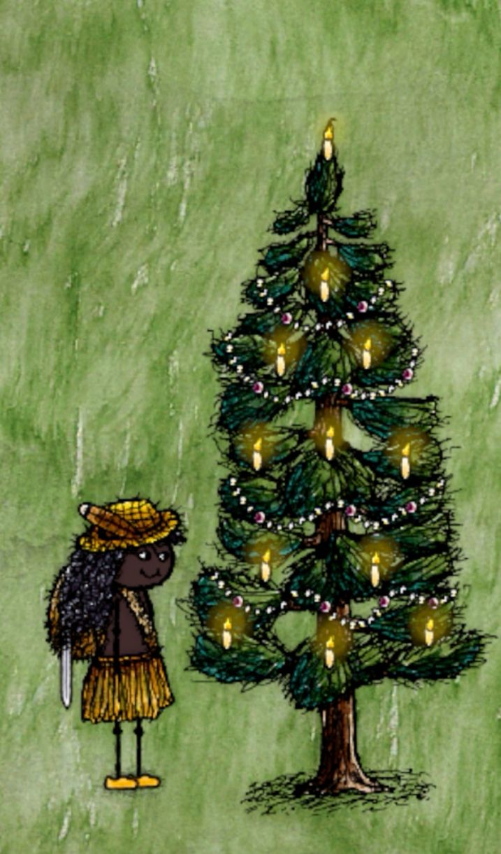 用引火棍点燃圣诞树,1分钟后变成剩一半蜡烛的圣诞树,再过1分钟变成熄灭的圣诞树。