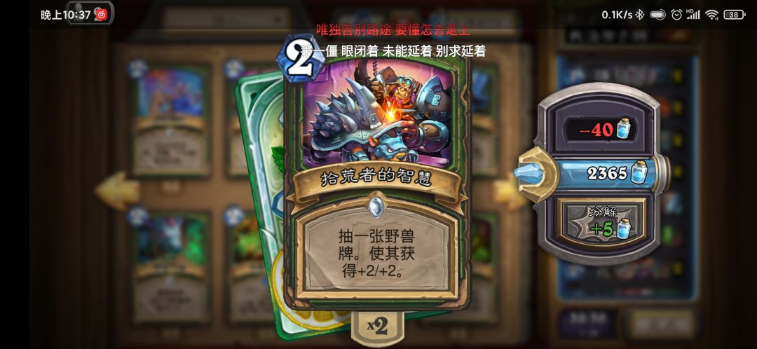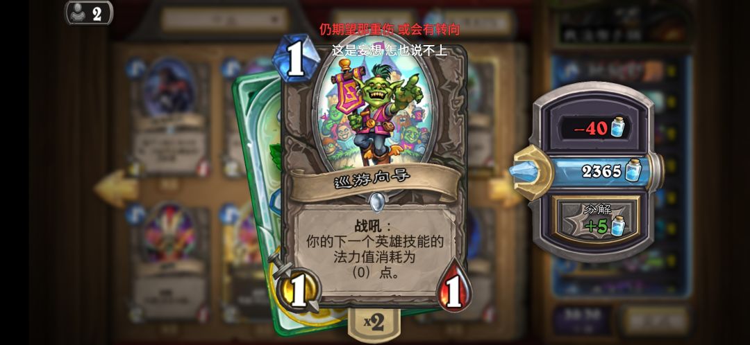 卡组里编了一个小软和+2+2,主要是为了针对少数海军贼,而且小软二费拍下也不亏身材,拾荒者的智慧只带了一张,主要是为了抽兔子,但是不建议满编,因为我们是快攻!(万一抽错了呢)