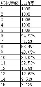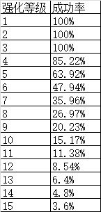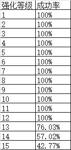10级混沌单手剑 使用普通武器强化石(品质为100%),强化概率如下