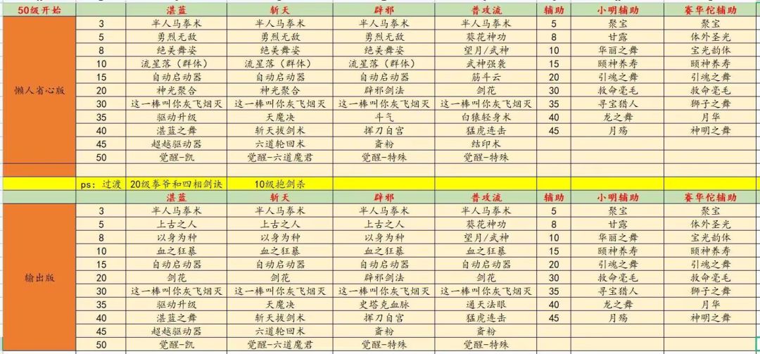 以下则还是之前那一张强力技能表