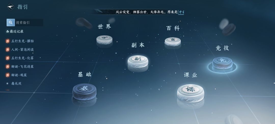 ①首先点开右上角菜单里的指引,点开指引后,我们可以看到有很多选择,这里我们选择课业