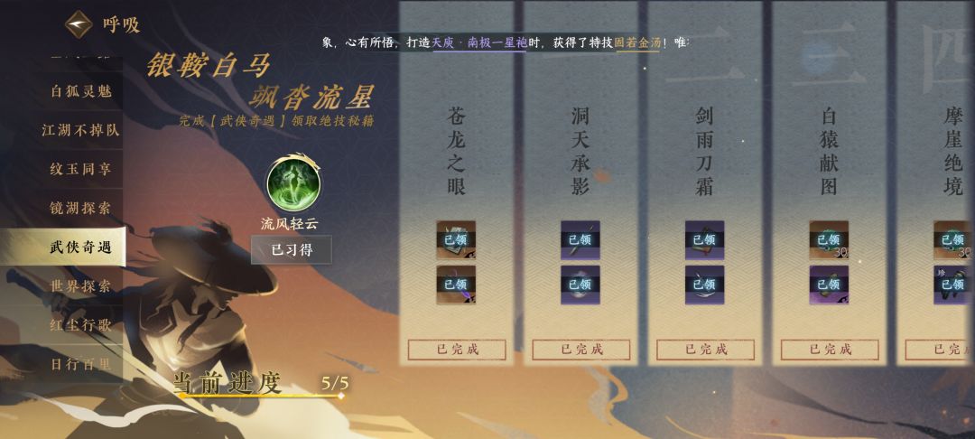 完成以上5个奇遇,即可获得5本虎钤经