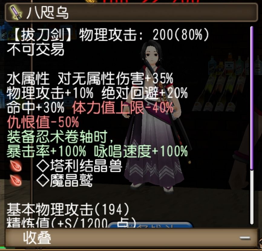 武器:既然自带百爆,武器方面自然而然是舍弃暴击拉满其他攻属,附魔方面更青睐于对属拔,通用灵刀选择为(12ATK·10灵·21爆伤·10%爆伤,仅需要71潜力,建议红双喜拔),王石选择魔晶鹫、塔利、压钉 毕业套为对属系列,包含以下选择: