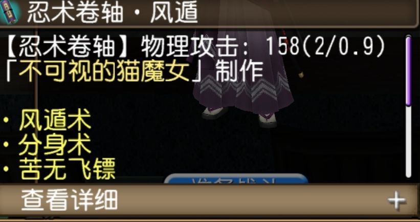 卷轴必为风遁,技能要求苦无、风遁术、影分身,属性要求加250攻速、5暴击,技能也可以散装两本(比如备一本1/1.1专门用来分身的,备一本2/0.5专门用来苦无的),或者共用一本2/0.7-0.9均可,鸣唱不低的情况下,只是少量站桩时间不同,像如果用鸟拔+0.9卷轴,分身基本没有动作十分流畅。卷轴制作攻略杀生丸殿大佬有一篇非常详细的攻略贴,想用自己签名卷轴的大佬可以去考虑一下。
