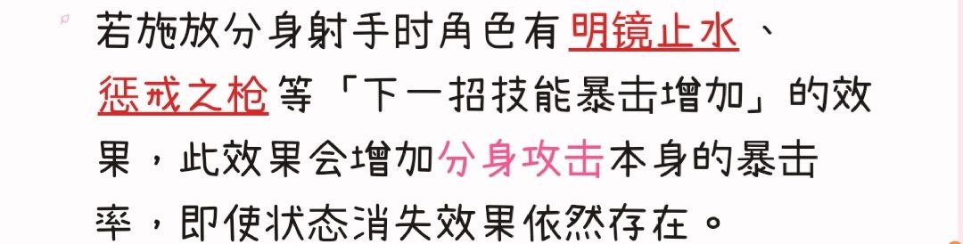 dpⅦ 明镜止水: 使用明镜·常套的情况下,buff将持续一分钟不被技能消耗,主要为普攻提供65暴击率,但打站桩王使用弓分身时,可以卸下明镜常套拖环,这样起手明镜连击分身将明镜buff消耗给分身保障分身稳定命中。此外明镜止水并不存在降低爆伤dbuff。