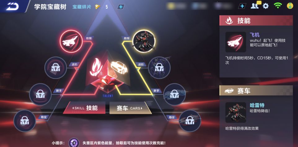 通过收集学院宝藏碎片,车手们可以在学院宝藏树中激活赛车和技能,并进行升级,帮助车手们更好地完成关卡挑战。