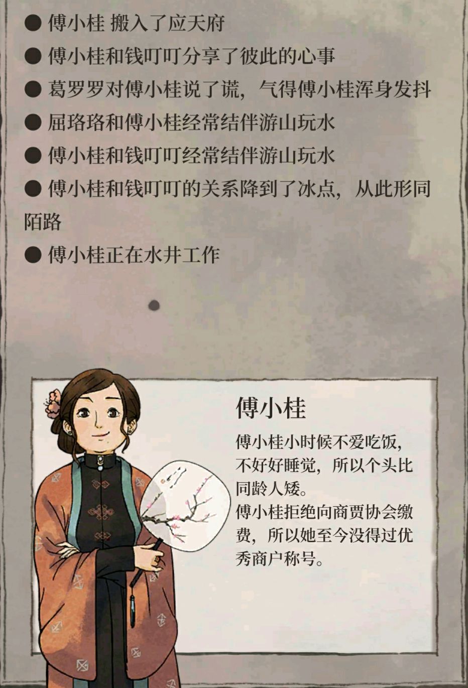 “屈珞珞是纯善之人,是个良友。傅小桂……怎么说呢,我认为她脾气有些古怪,对我忽冷忽热的,刚开始总打听我的收入,我还以为她想偷学我的经商之道,后来才发现她是想根据我的情况为我选择景区,同我一起游玩,只是……”
