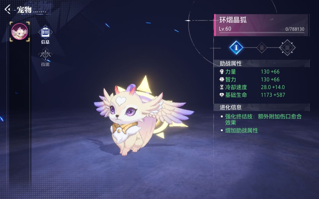 零氪党能肝出来的话,可直接拉满作主战宠物,极地鹿角兔作副战宠物。决定要拿荧辉晶狐的话,就接着攒资源,等开出荧辉晶狐后,再把攒的资源全部投入到它身上。 - 选择环熠晶狐作为副战宠物。