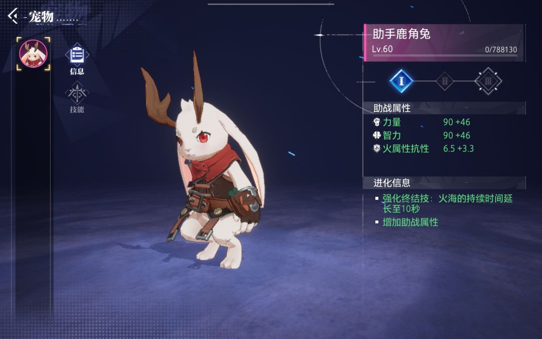 整体强度高于助手鹿角兔,次于极地鹿角兔。不建议优先培养,前期带着过渡即可,后期可根据个人需要选择是否培养。