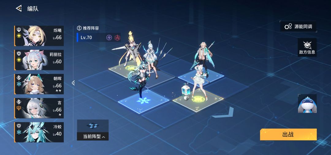 一队上了冷蛟冰冻对面,包括BOSS(但这个BOSS该回血还是回血,我是靠言的练度硬靠伤害灌死),莉丽拉没练度,没60突破,模组和烙痕也是没怎么强化的,所以靠冷蛟冰冻能缓解一下生存压力。