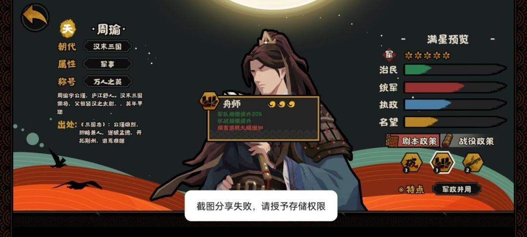 再看二技能舟师就是常规的增加军队规模,跟韩信的军队规模一摸一样。个人认为可能各它在寻找韩信以后的继承人。我愿称为新一代韩将军。