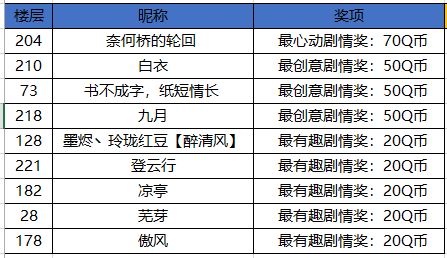 3、活动结束后的七个工作日内在原贴公布,用户需自行留意中奖信息;