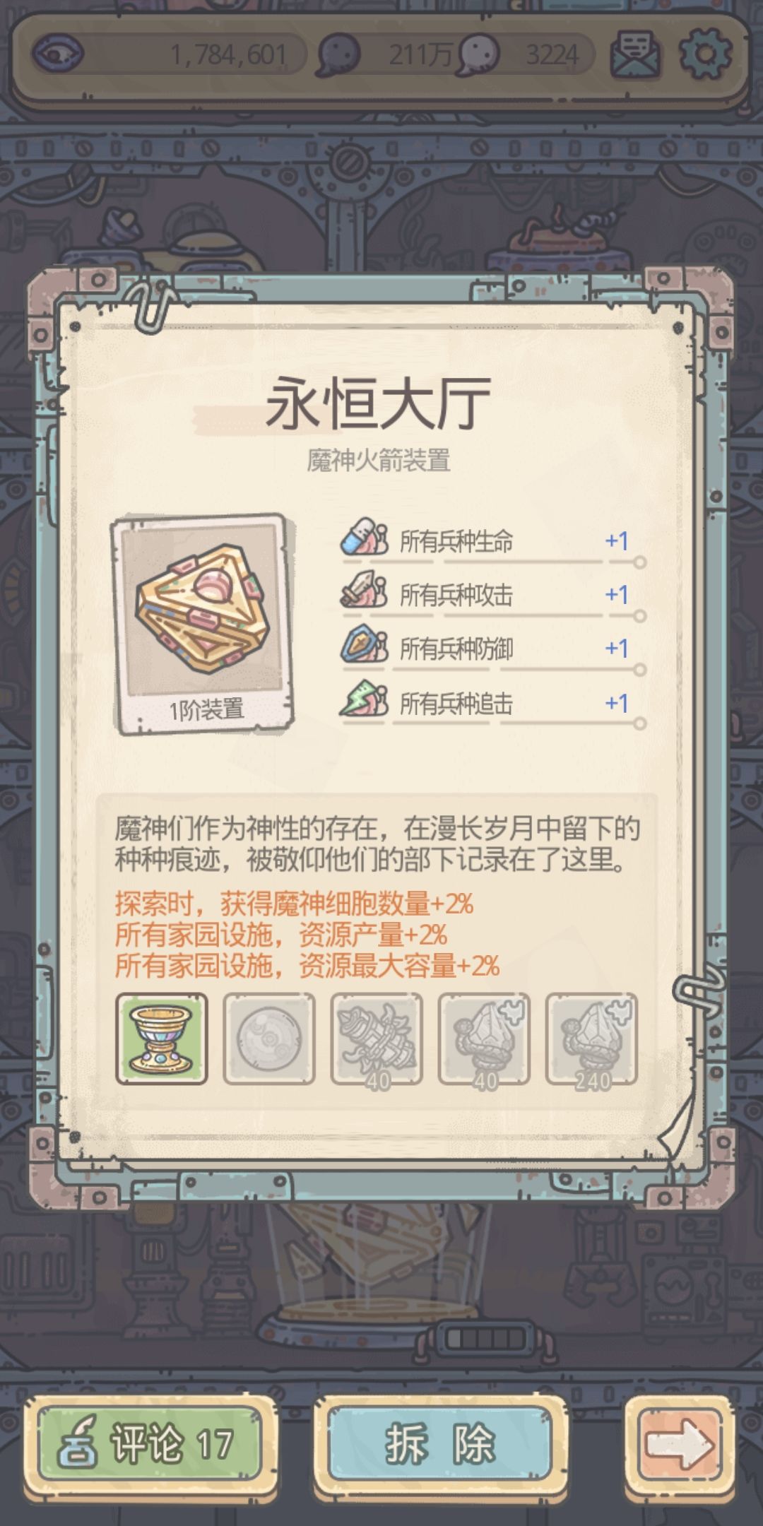 拿到火箭升级材料记得全分解成白色,可以得到一些黑豆而且能解锁更多火箭建筑。后面的建筑有资源加成。有3D打印材料也记得留给后面的,有绿贵。
