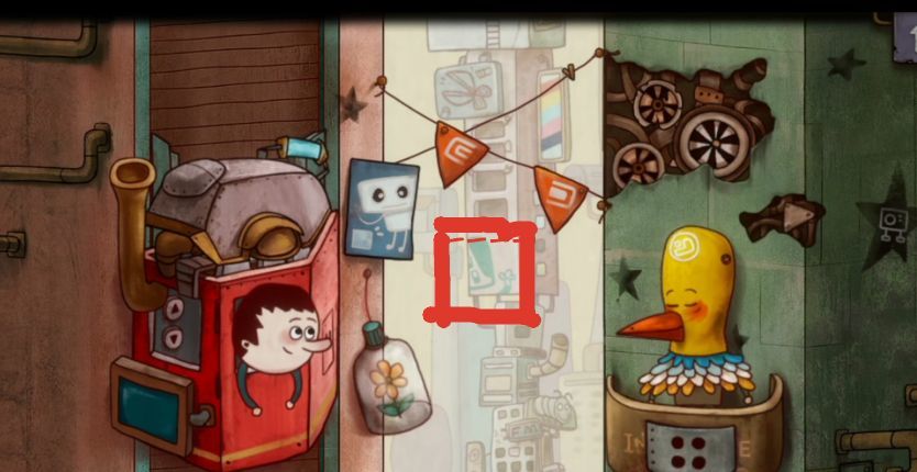 电梯旁边是鸭子追小三角,中间正是在九层鸭子木偶那里可以得到的羽毛。盲猜(仅为个人假想)鸭子小姐认识小三角,羽毛可能就是和小三角闹腾时掉的。(小三角是《小三角大英雄》里面的角色,可在电脑购买)