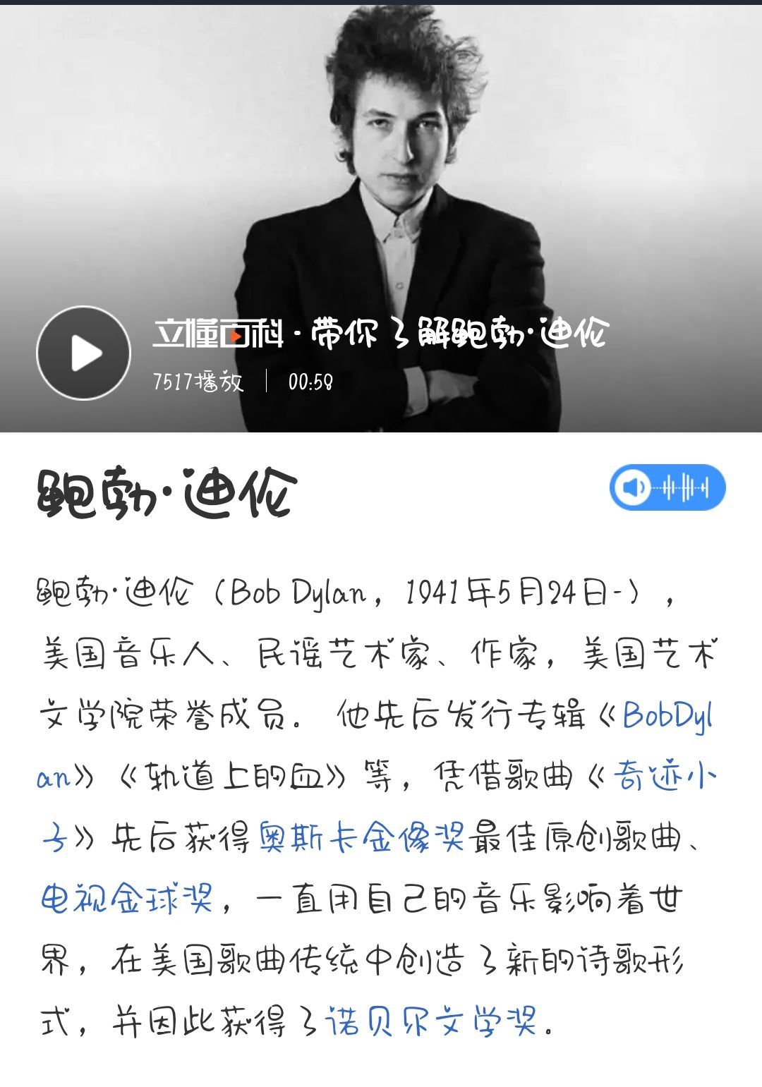 鲍勃·迪伦,诺贝尔文学奖获得者。