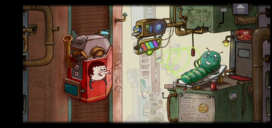 虫子上方画的是十一层的坏虫子,就是那只蓝色的。躺椅下方的圆标是小机器人Vie,就是隐藏关入口的那个小机器人,来自机械构成的星球。