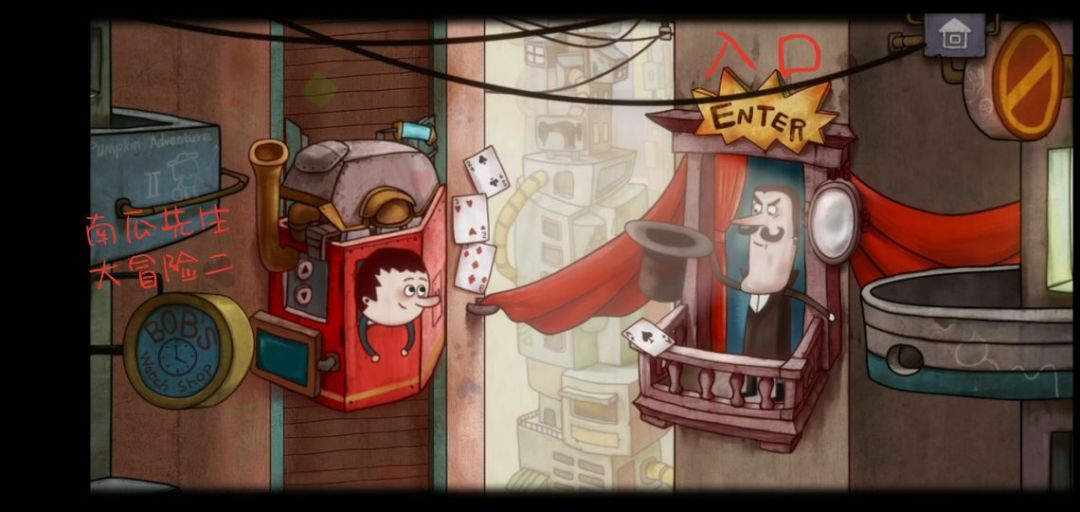 市长单词上的画像就是老鲁比,他躲进的屋子是时间长廊,从右下角的胖布丁食品厂初步推测这里类似于九龙城寨。