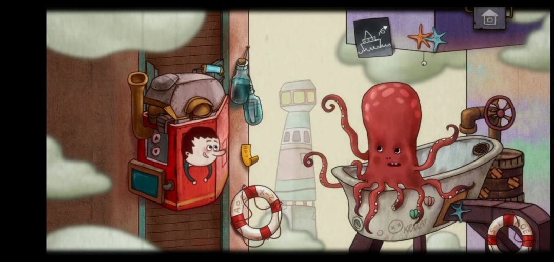 这里从照片墙的小电视可知,章鱼和船长“相爱相杀”。
