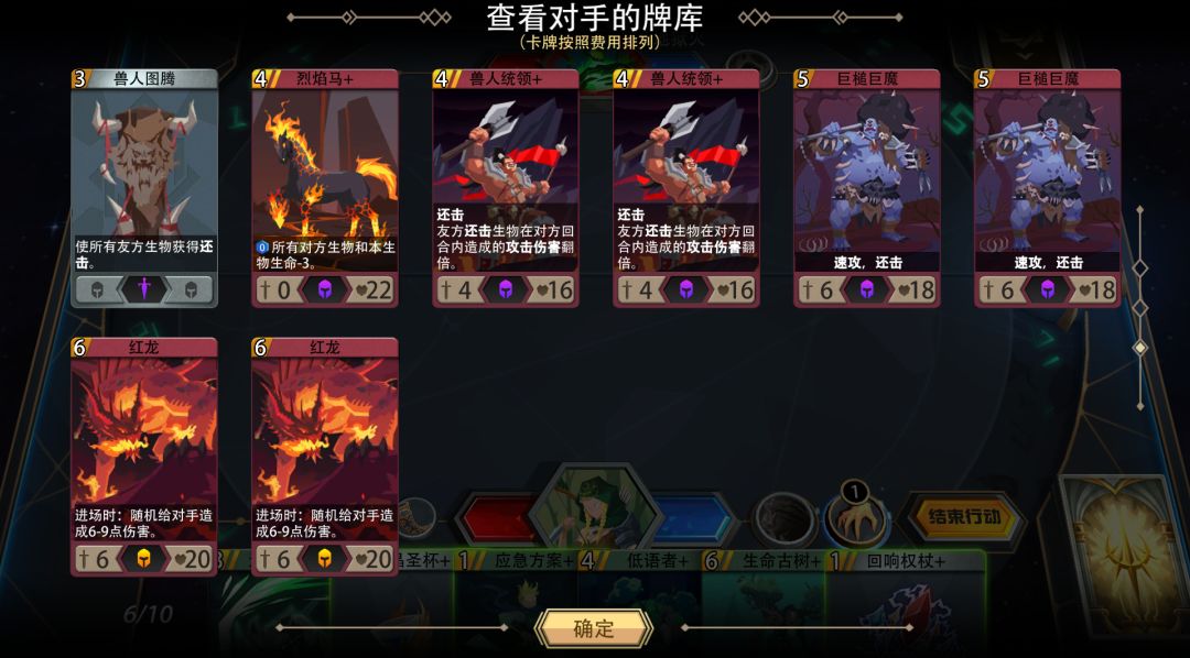 ai常规出牌思路:2法力不出牌(或是上眼魔+)、3法基本必上兽人萨满+或步兵+、4、5法力中大概率有1回合上兽人统领、如果能提前清完对方场上生物,6、7法力大概率有1回合会不出牌,之后会上巨型喷火傀儡,如果无法清场,6、7法力容易上场双红龙。