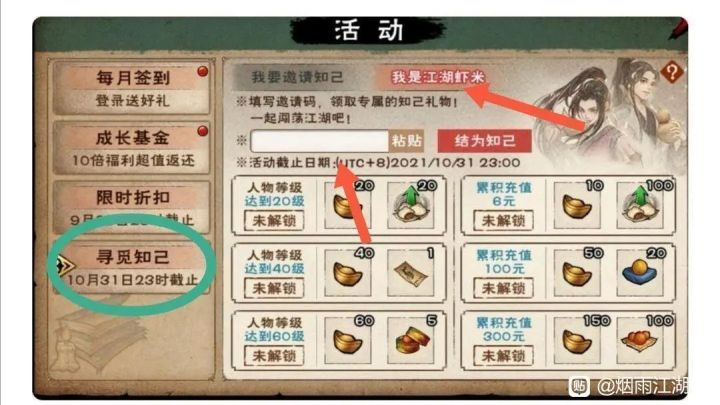 小虾米活动拿元宝方法:游戏右上角点开活动,选择寻觅知己,我是小虾米,输入码ADRYSP,可获得400元宝➕100洗髓丹➕20顺脉丹➕马车票