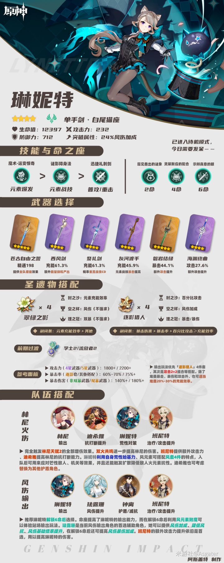 林尼,夜兰,琳妮特,班尼特与芭芭拉一图流攻略
