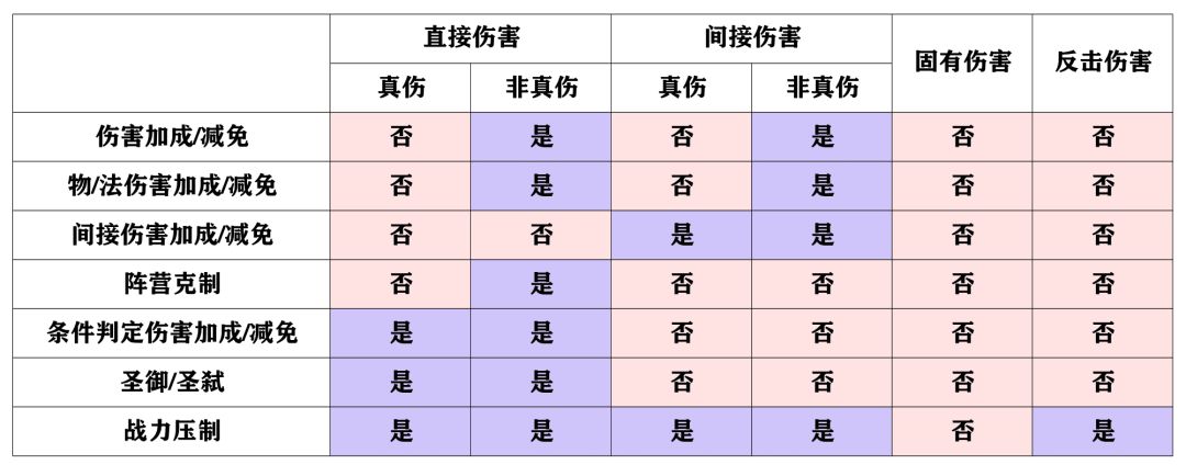 间接伤害:包括负面伤害效果(如灼烧、流血、诅咒、中毒、猛毒),溢出伤害,特殊技能说明的间接伤害。伤害颜色为紫色。无法暴击、无法被闪避、无视阵营克制、无法被分摊。