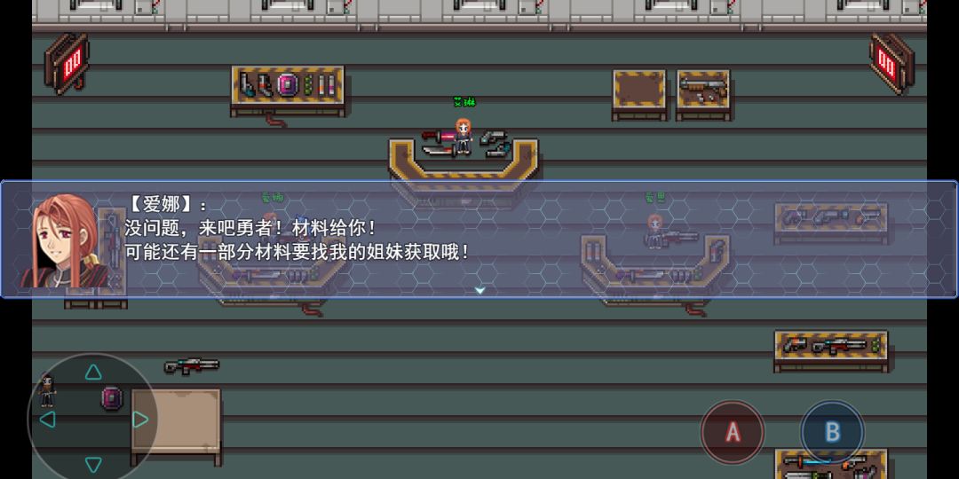 2.我们来到”武器研发室“,对话我你们上面的npc小姐姐,她会告诉你,她现在材料不足,需要找齐材料才可以。