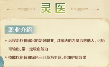 灵医:传统意义的奶,治疗队友,少量输出+吸血+定身,免沉默。副本三大件之一。法系