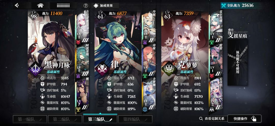 桃更新了我也是立刻抽了满觉,又研究了两天配队,最终确定了这样一个配队。各个魔女的作用,黑神主c,律破盾控制,克萝萝奶妈保命。