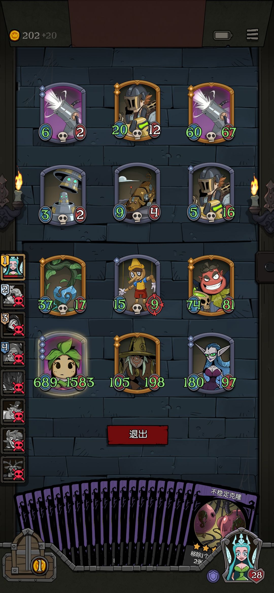 然后我又是个成长嘛,算小胡,不算特别胡,大头成长都在小树苗上。所以每次就是看着小树苗开无双一打十。这就导致我每盘只能刮它七点血,就很折磨。每局是我小树苗发光,然后他开始究极套娃,每局动画时间拉满,直接把招募卡没了。