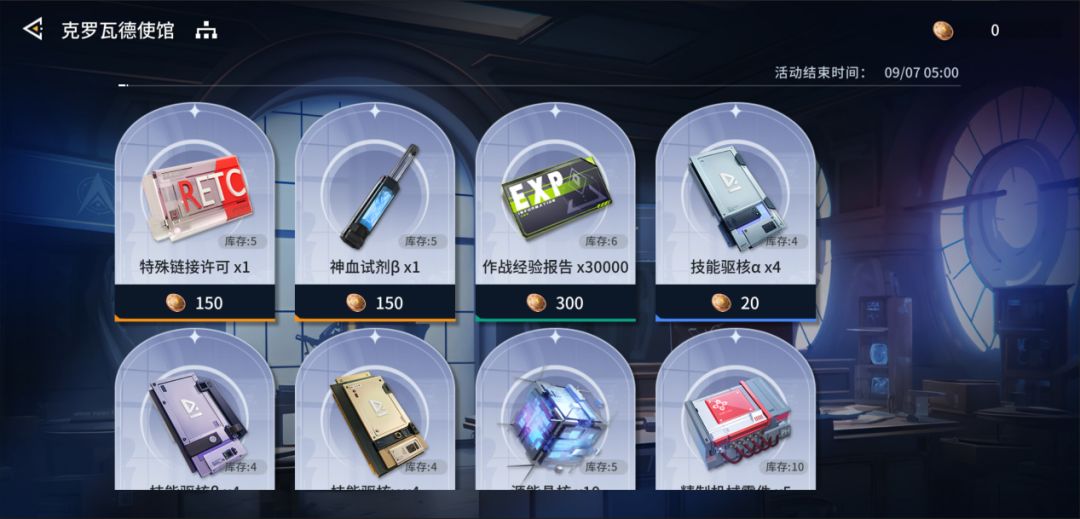 活动期间,链尉官通关副本消耗抗蚀值会获得“克罗瓦德纪念币",克罗瓦德纪念币可在克罗瓦德使馆兑换不同的商品,以补给日常战斗所需。