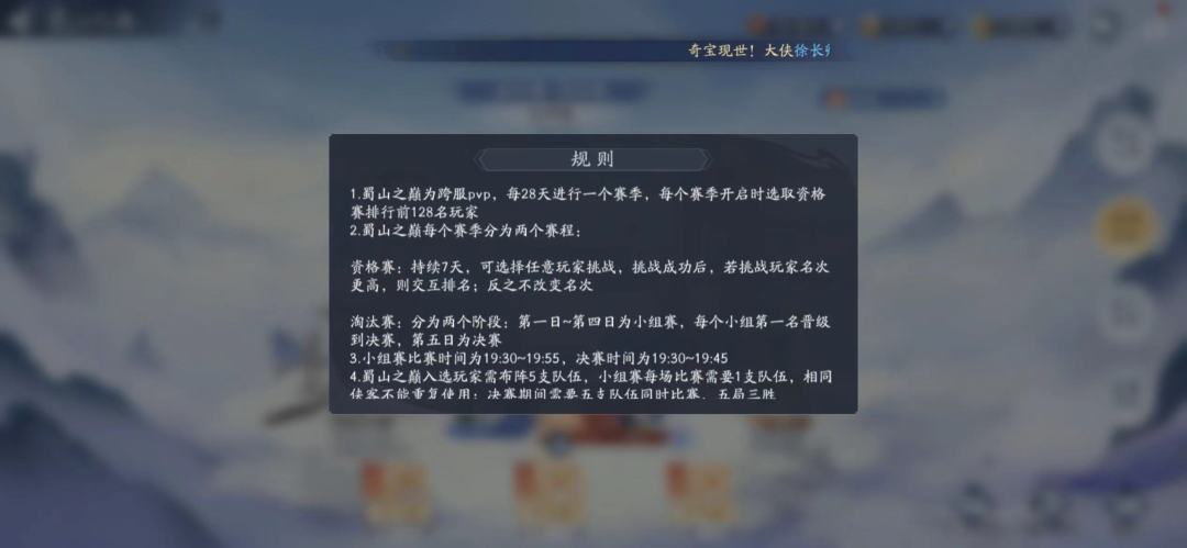 第一阶段,资格赛,类似于比武大会的标准模式,每位玩家可布置3队。这个类似于比武大会的前置部分,还是3局2胜制,可以赛马,战力不足的朋友可以选择田忌赛马的方法为自己取得比较好的名次,不过格外注意的是在最后一天结算的时候防止被偷塔需要守一下自己的名次。只选取128位可以参加正式的蜀山之巅比赛。另外还需要关注的一点就是资格赛的排名也决定了后面蜀山之巅的排名,比如大家后面都是蜀山之巅正赛第一轮就被淘汰,那么你资格赛的排名就决定了你的最后蜀山之巅排名。