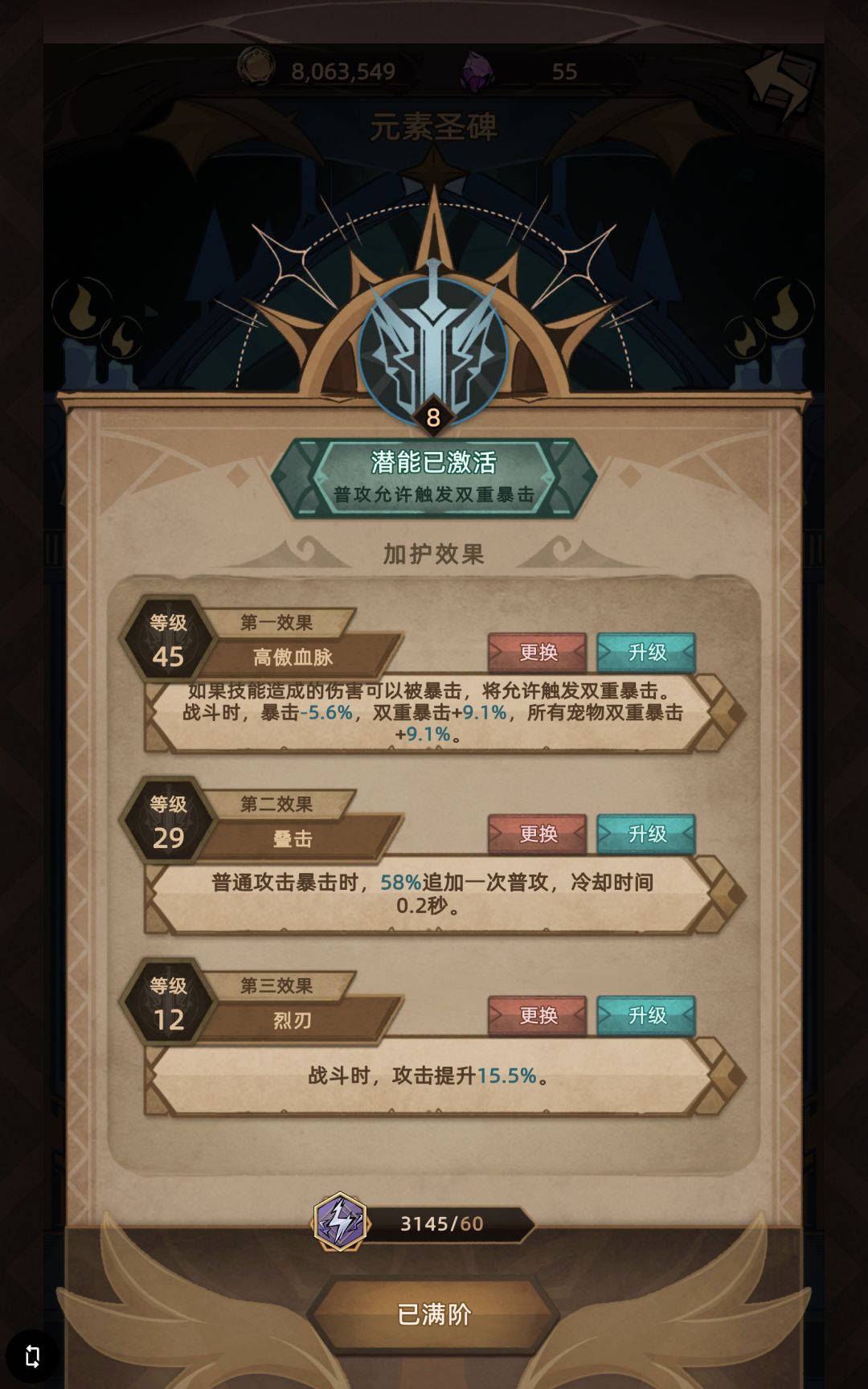 3.烈刃 提高攻击,不选择穷追猛打的原因是叠不满,对面扛不住50层的时间。