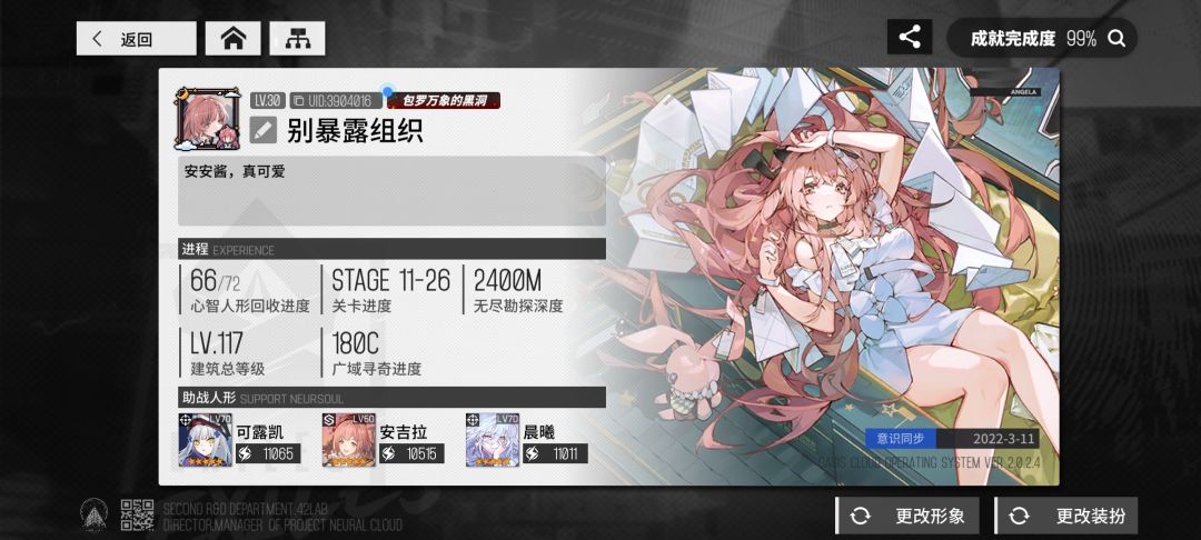 最后再说,我现在三改海猫,三改缠织,三改图灵,三改克罗琦,全部压箱底,这就是你说的改造牛逼?克罗琦偶尔还在用,你要是觉得我不能改造其他的?要不看看碎片箱子和碎片,其他人形我大可以改啊,但是我为什么要改呢?花费那么多资源去搞一个人形,你以为资源获取多快啊?我老老实实刷强的五星人形,我适合自己的改造不行?