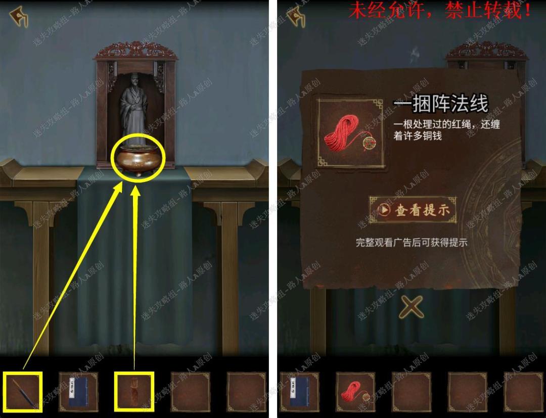 5.将【香】插入香炉,用【火折子】点燃香,取得【阵法线】。5.1