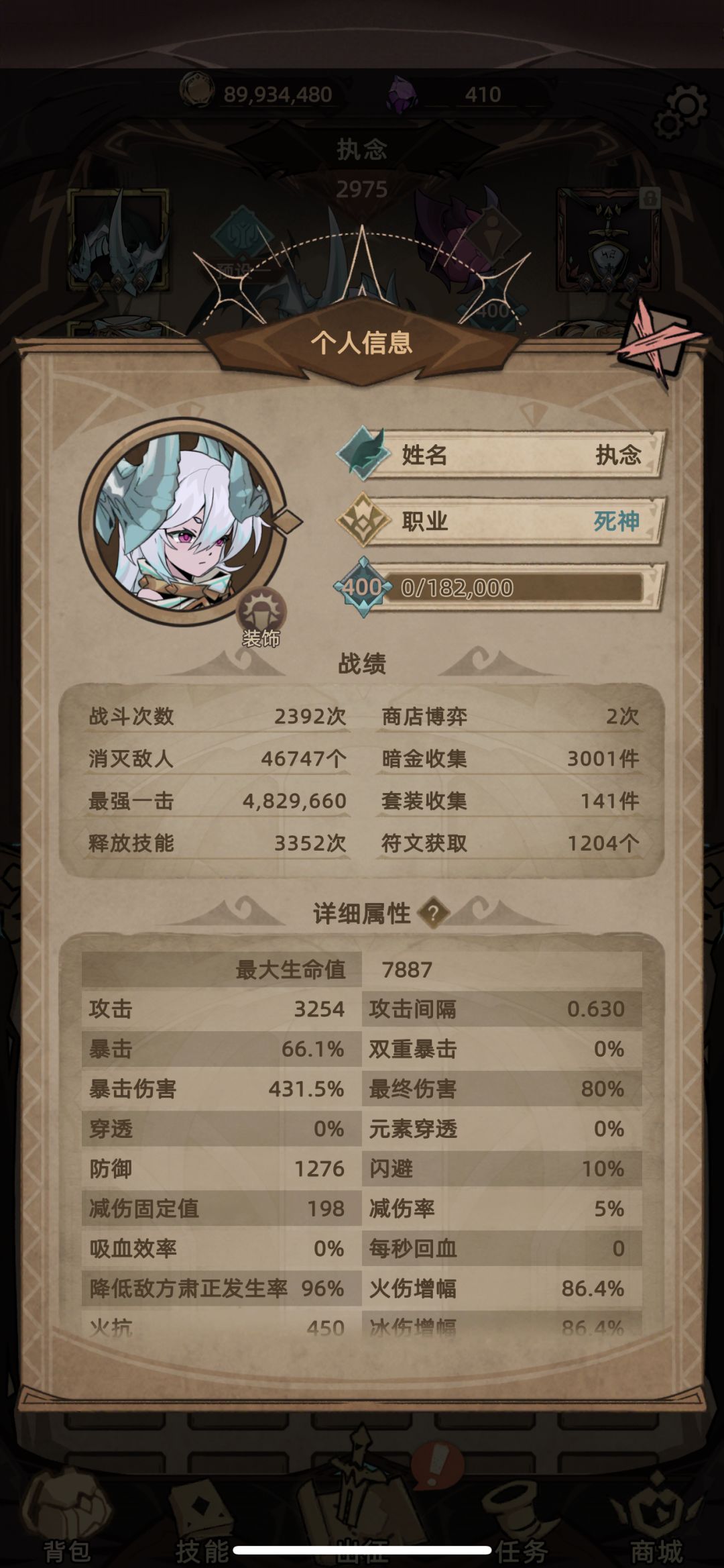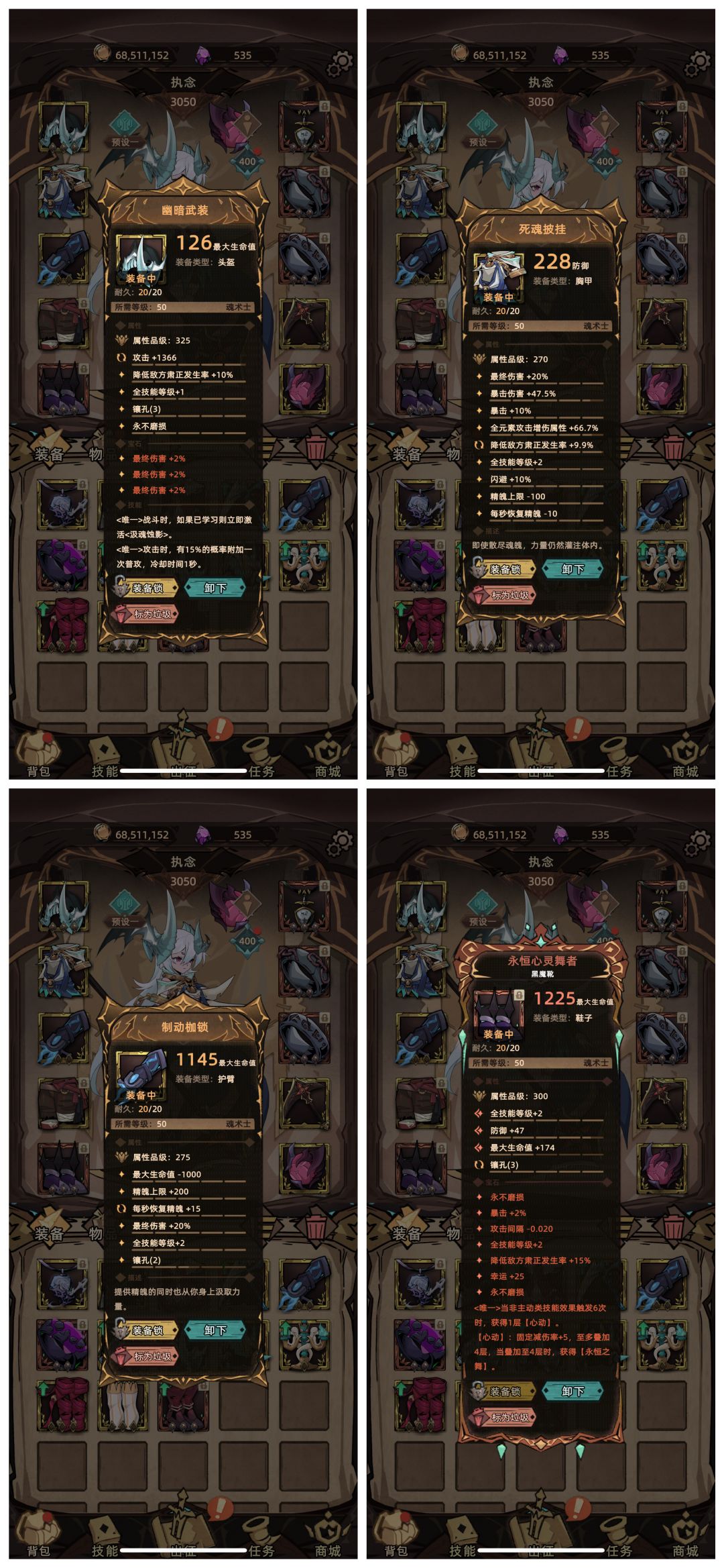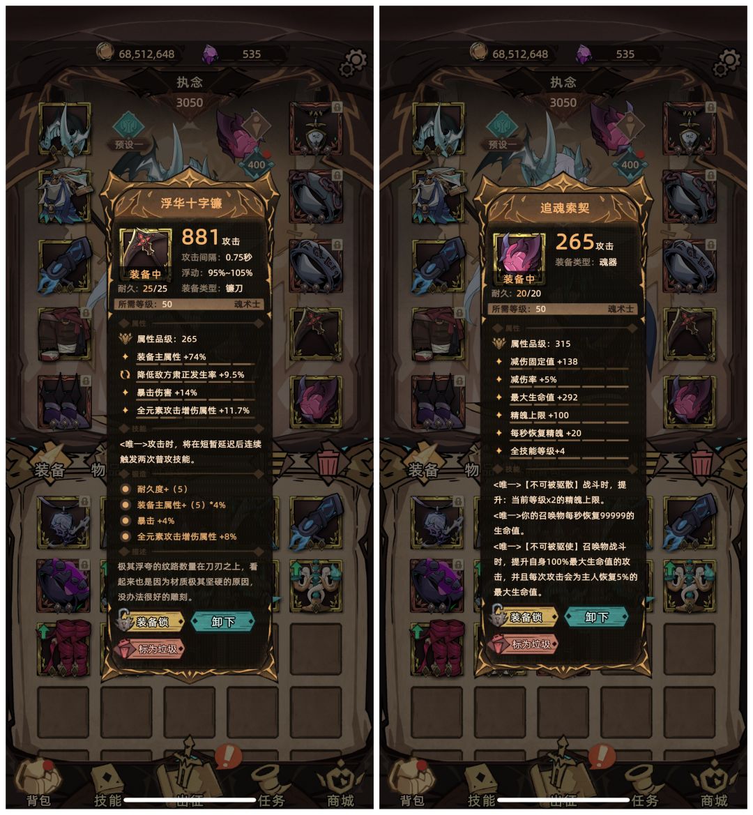 武器浮华镰刀 副手用追魂索契+技能等级和精魄