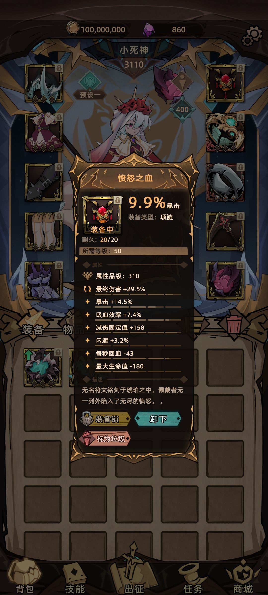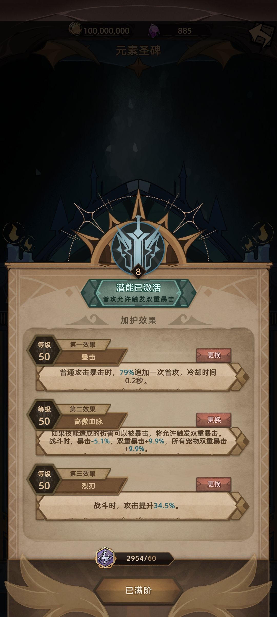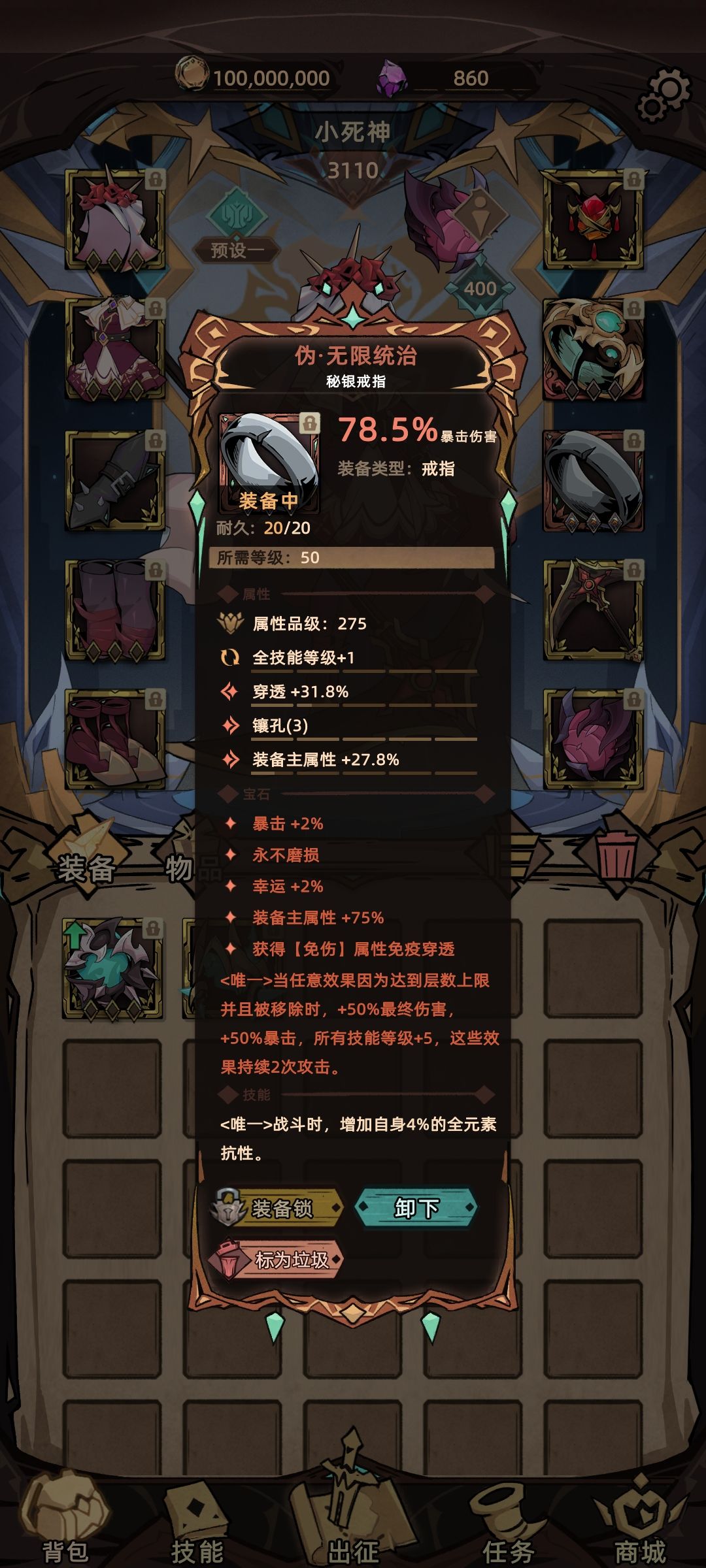 伪无限统治,基本上全程触发,这个是随便做的,后面做更好的,3主属或者2主属+暴击伤害。