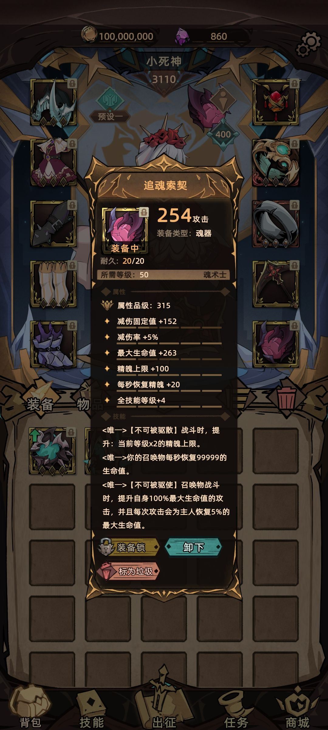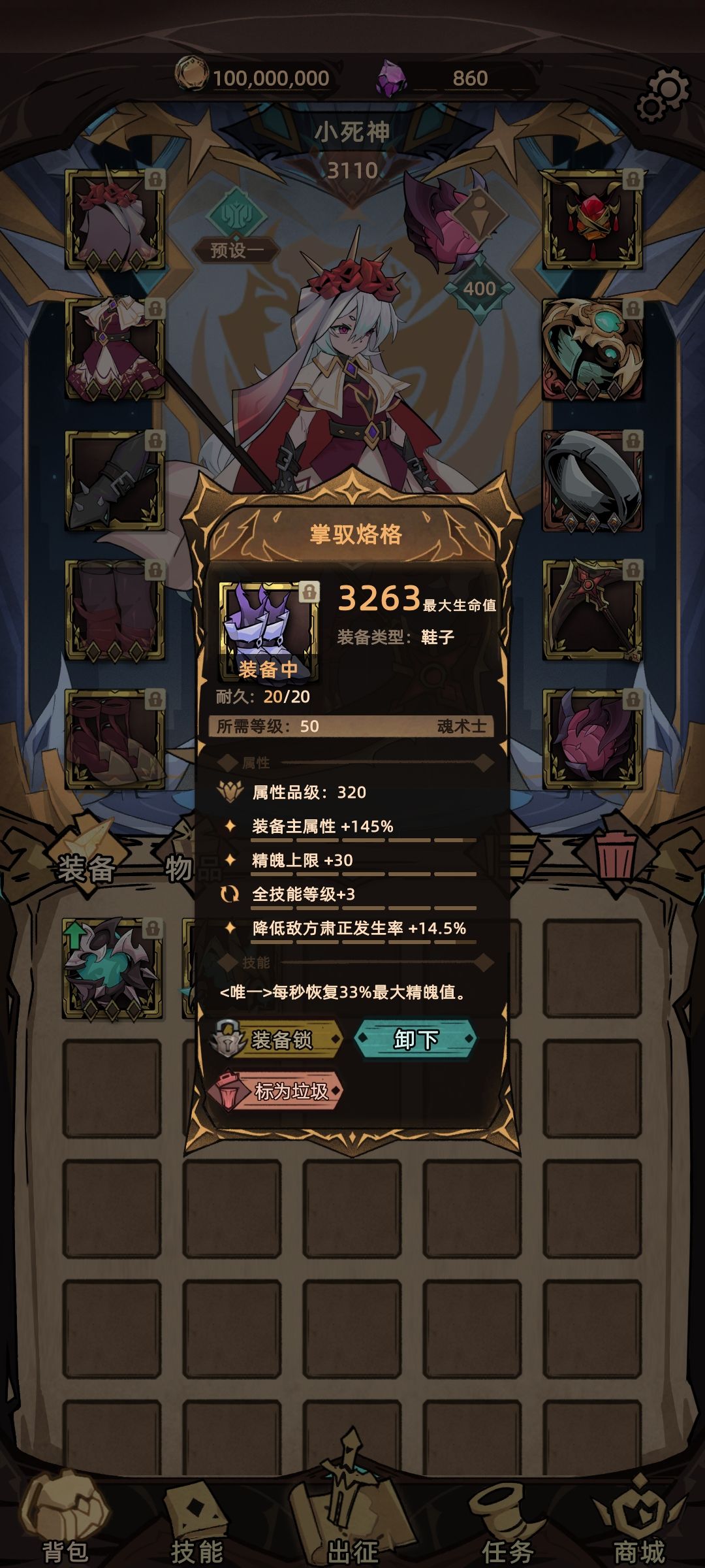 斩灭,而且还要是精魄斩灭,对目标+全体施加1层灵魂裂创,不触发精魄效果就会断档,所以鞋子和副手才会选择那俩。