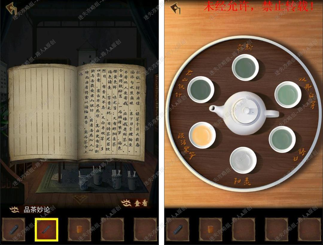 93.点击茶壶依次品茶,结合品茶妙论的线索,调整茶杯位置,取得【铜片】。93.1