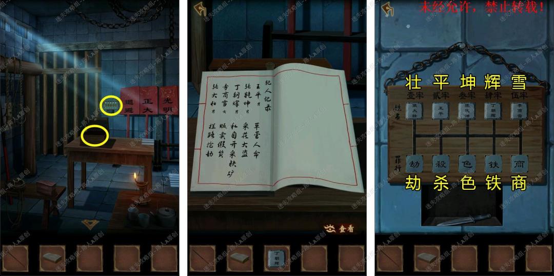 81.根据狱卒记录的线索,将【犯人名牌】放入木牌并且调整位置,取得【锋利小刀】。81.1
