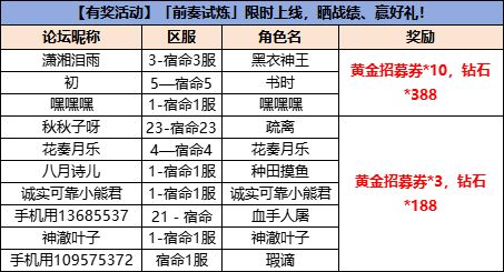 【获奖名单】「前奏试炼」限时上线,晒战绩、赢好礼!