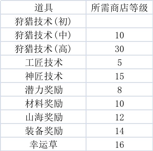 交易所等级产出工坊道具