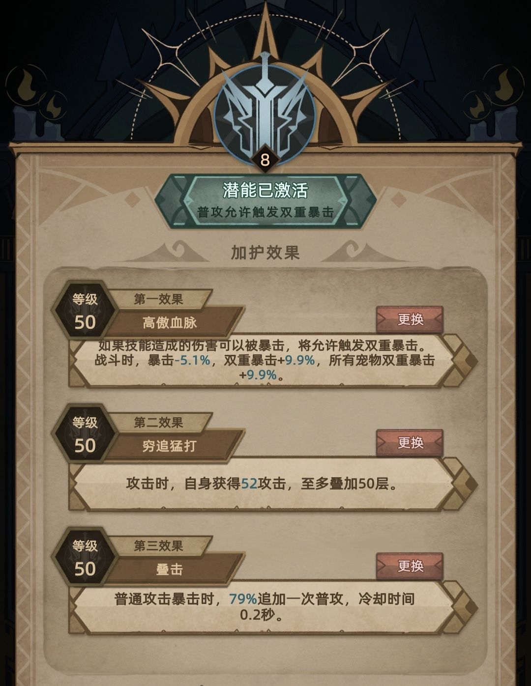 护臂-叛逆:提供最高15点双重暴击,暴伤足够高的条件下,单件伤害提升达45%以上,强力暗金散件。