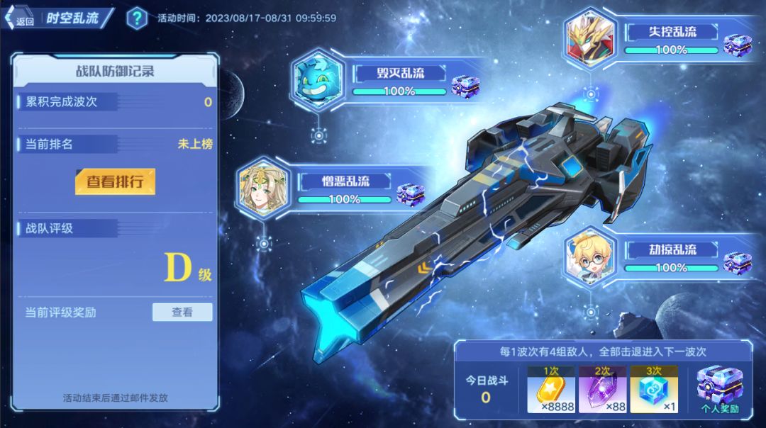 5.时空乱流会根据战队完成的波次进行评级,波次越多评级越高,高评级可获得更多评级奖励和参与排名;